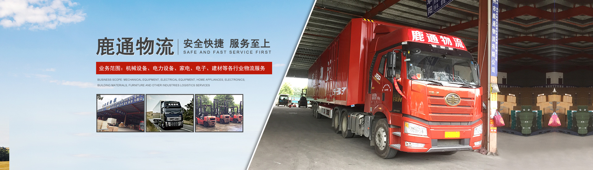 溫州市鹿通物流有限公司主要從事溫州至國內(nèi)的公路運輸業(yè)務(wù)。業(yè)務(wù)范圍涵蓋機械設(shè)備、電力設(shè)備、家電、電子、建材、家具、食品、制藥、化工、日用品、紡織、高科技產(chǎn)品等各行業(yè)物流服務(wù)。目前,公司營運遍及全國。